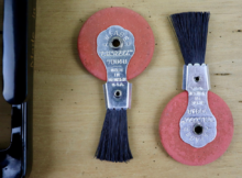 What Are Typewriter Eraser Brushes? The circular objects in the image are typewriter erasers, which came with a small brush attached to them. The erasers themselves were made