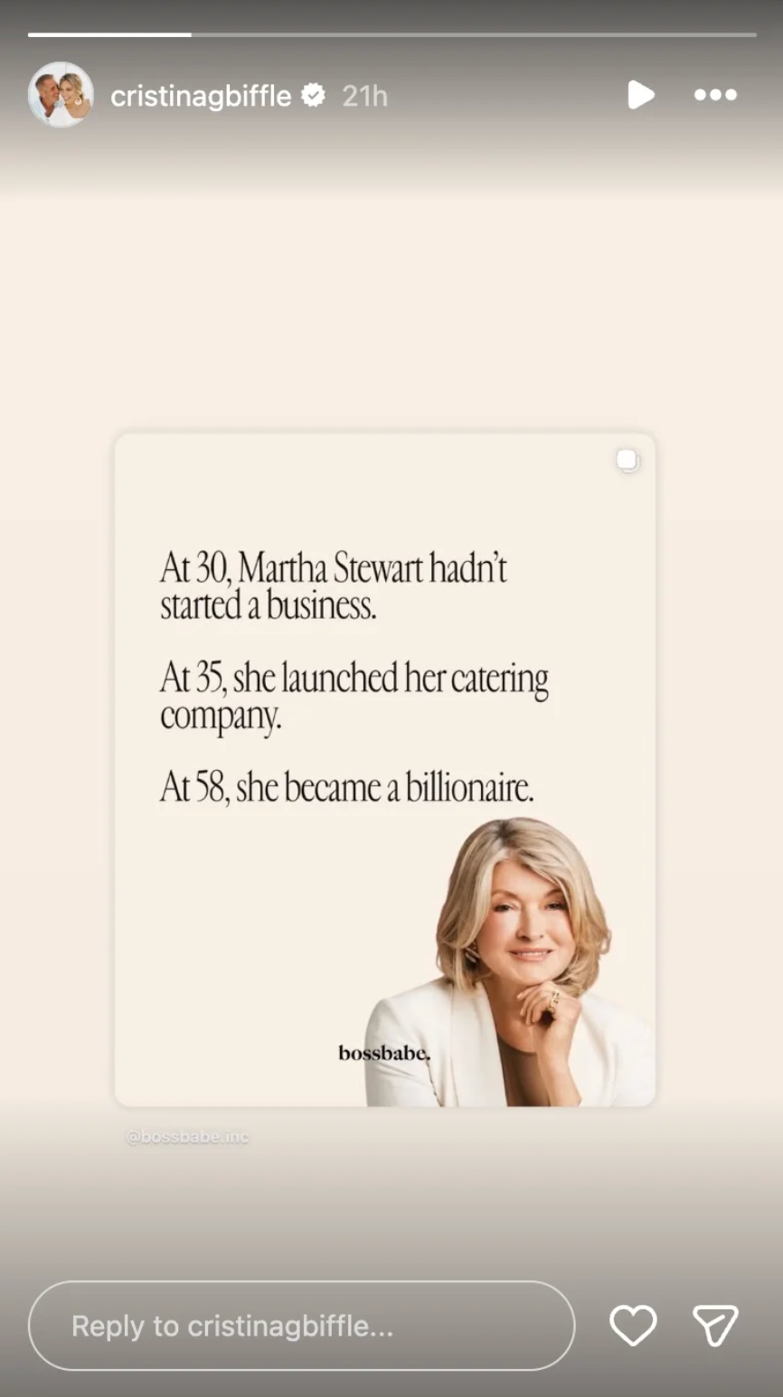 “At 30, Martha Stewart hadn’t started a business. At 35, she launched her catering company. At 58, she became a billionaire.”
