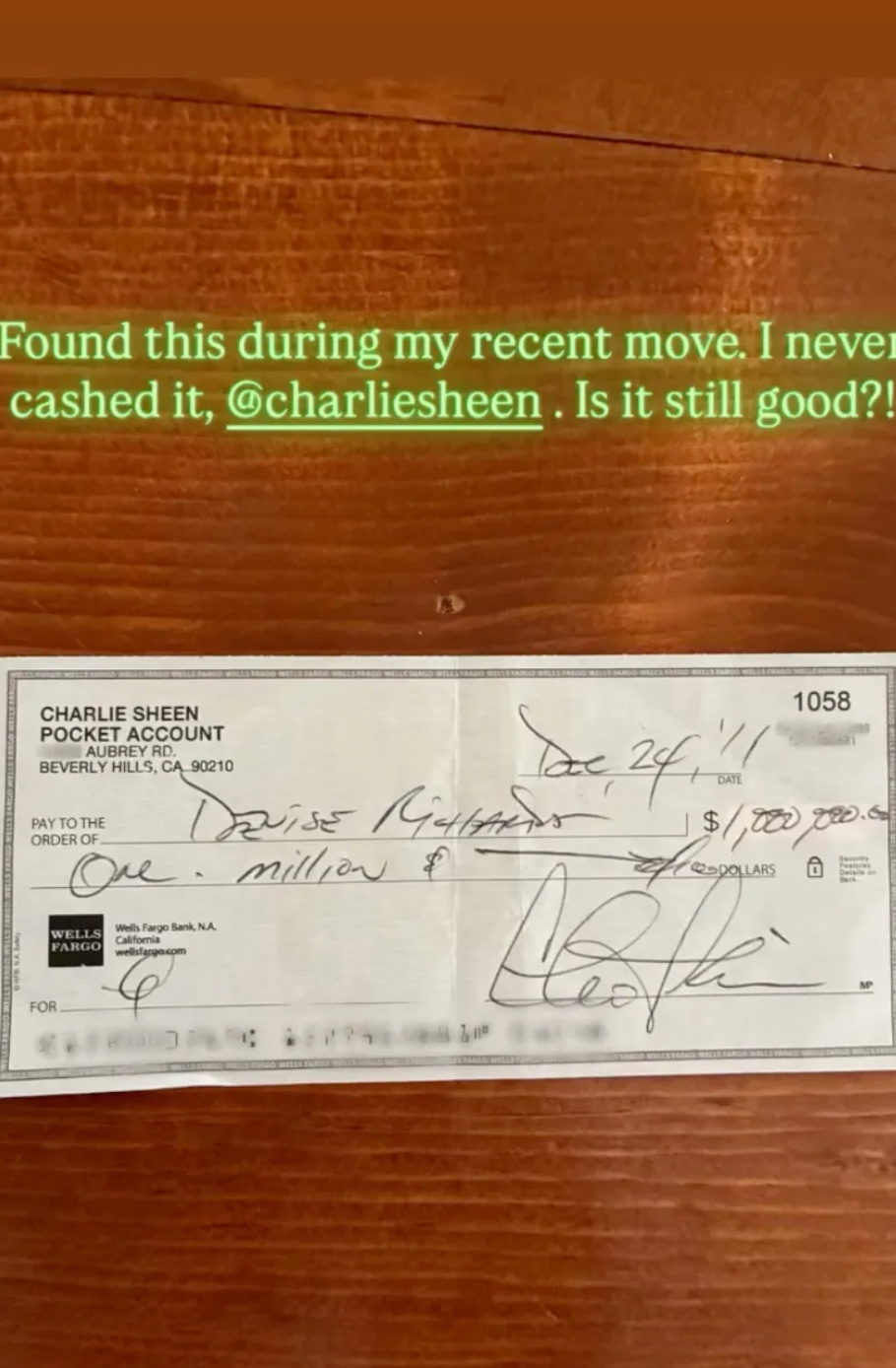While most personal checks expire after six months, it’s clear this one was meant more as a sentimental find than a cashable asset. Still, fans couldn’t help but laugh — and wonder if Sheen might honor it anyway.