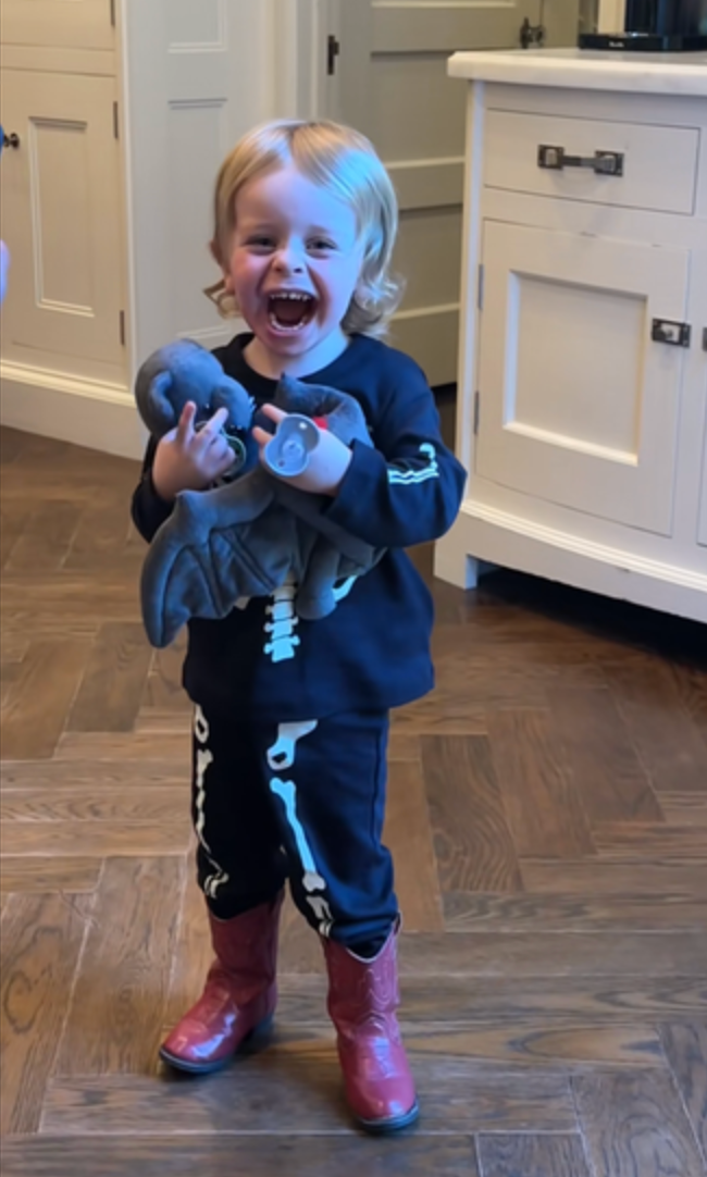 The TV personality and daughter of rock legend Ozzy Osbourne shared a hilarious new TikTok clip featuring her son dressed as a tiny skeleton. In the short video, little Sidney proudly bites the head off a stuffed bat, then laughs with joy as he holds up his spooky “trophy.”