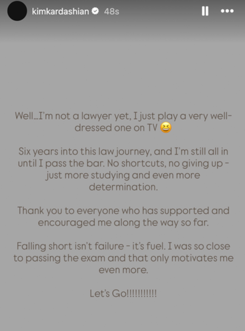 In a heartfelt statement, Kim shared that she’s now six years into her law journey, and although she came close this time, she’s not discouraged.