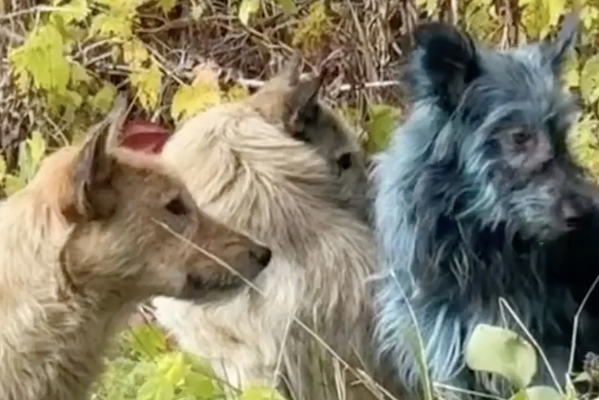 “We are on the ground catching dogs for sterilization and came across three dogs that were completely blue,” the group wrote on Instagram.